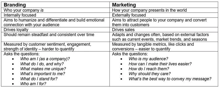 So what are some of the key differences between branding and marketing?