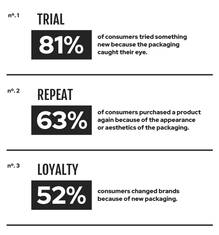 Trial and repeat purchases are critical to a brand's success and the numbers tell us packaging design is one of the most relevant ways to do just that.